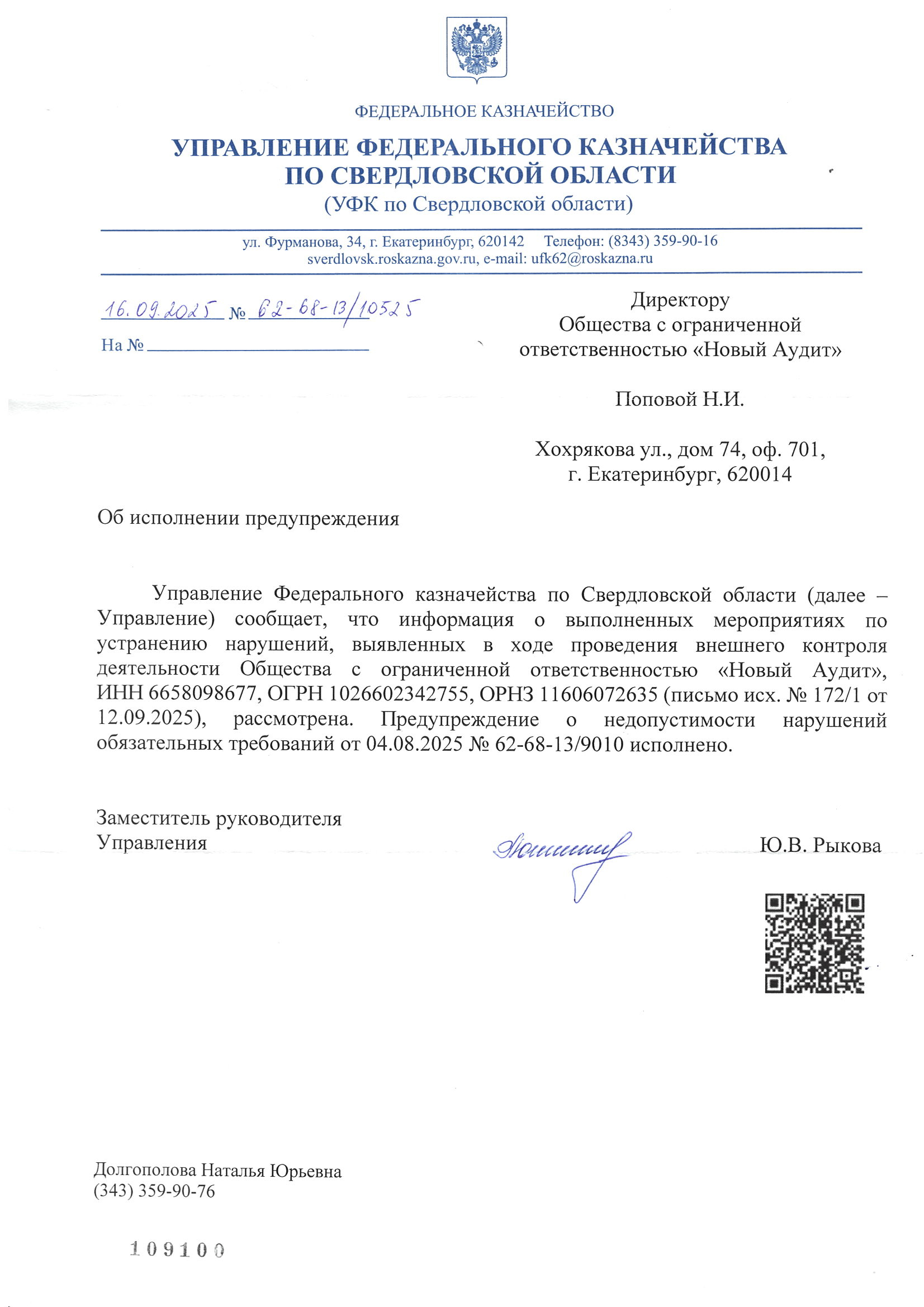 Об исполнении предписания Управления Федерального казначейства по Свердловской области 07.05.2024
